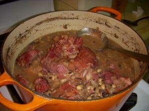 Coqui has a big pot of black-eyed peas simmering on the stove, liberally studded with the leftovers of their Christmas ham, and she gives us both a small bowl of this grease and gladness. In Texas, black-eyed peas are eaten on New Years day, with greens, usually collard, to guarantee peace and prosperity. I want more of these butter-soft, hauntingly hammy peas almost more than I want peace and prosperity. Maybe I can have both. I resolve to put on a pot as soon as we settle down in San Luis Obispo. I am blissfully happy to spend some time with my girlfriend, who I miss not just for her secret-recipe rum cake every Thanksgiving, but on many other days in the year as well. Friends like this don’t require a great deal of cultivation: once the roots are deep, a little scattering of laughs and love once or twice a year will keep the friendship strong for decades. When you have as many shared memories of the fall-on-the-floor-funny variety as we do, a well-placed smirk or shoulder-shrug is as good as a thousand words.