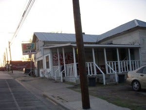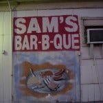 Sam’s is at 2000 12th Street, and the neighborhood is both colorful and, actually, colored. The place has a reputation for (arguably) the best backyard BBQ in Austin, among many worthy contenders. Note the prevarication here? Anywhere in Texas, BBQ is a subject fraught with potential conflict, and I am a neophyte who probably shouldn’t even enter the reverent discussions: I don’t profess to be a BBQ expert, or even a true connoisseur. I just love pork, and one of the great ways to eat pork in Texas is at a barbecue place. Ronnie has told me the pigsickles (his word for ribs) at Sam’s are goooood. So after a quick shot of tequila to take the edge off my drive, we’re off to Sam’s.
